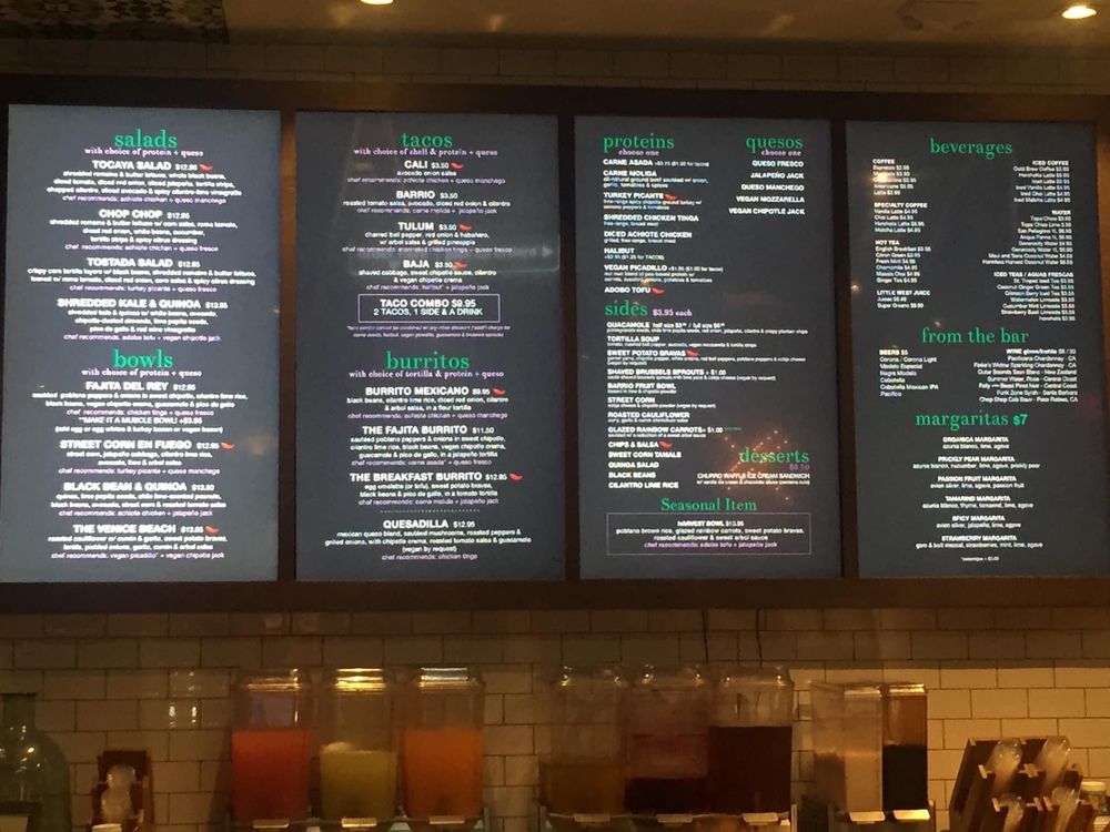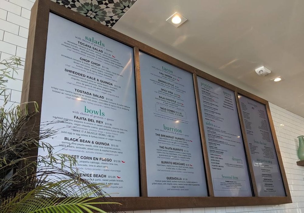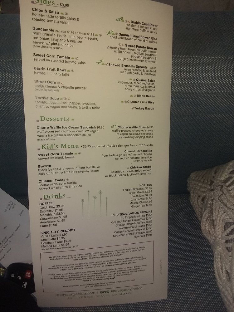 Tocaya - Los Angeles is a trendy Mexican restaurant located at 6550 Sunset Blvd, Los Angeles, CA offering gluten-free options with a focus on fresh ingredients. The menu includes Pescatarian and Vegan options, with a variety of dishes for brunch, lunch, dinner, and dessert. Customers praise the clean and spacious ambiance, along with the friendly service. Some highlights mentioned are the Taco Salad, Churro Bites, and the flavorful Cucumber Mint Limeade Agua Fresca. While some reviews mention disappointment with certain dishes like stale chips and overcooked street corn, the overall experience at Tocaya seems to be positive. With a modern and chic interior, moderate noise level, and a full bar offering happy hour specials, Tocaya - Los Angeles caters to a diverse range of tastes and preferences in a welcoming environment.